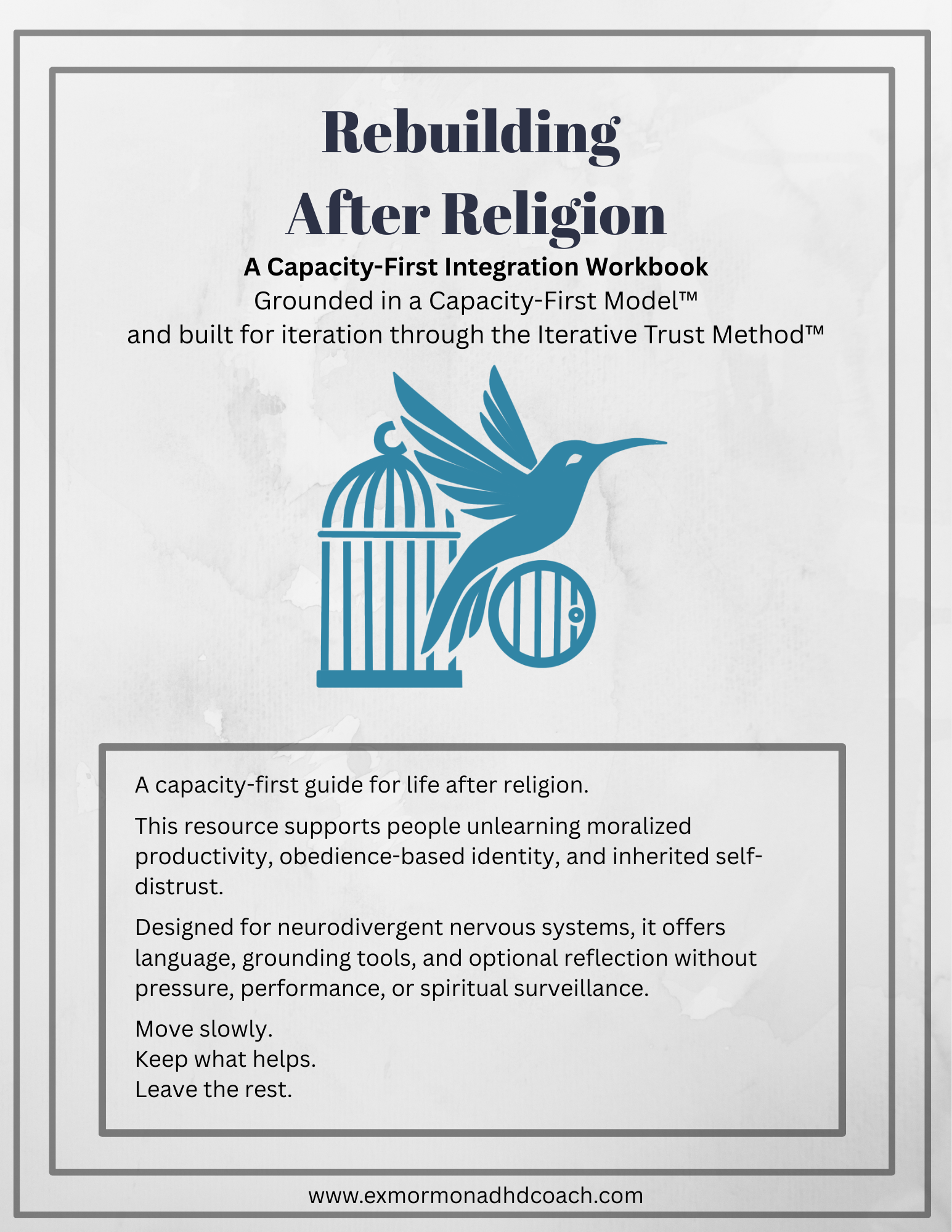 A gentle, capacity-first worksheet pack for life after religion. Designed for neurodivergent nervous systems, these pages help untangle obedience-based identity, moralized productivity, and inherited self-distrust. Includes grounding references, translation tools, and iteration-based practices with no pressure to finish, perform, or believe. Move slowly. Keep what helps. Leave the rest.